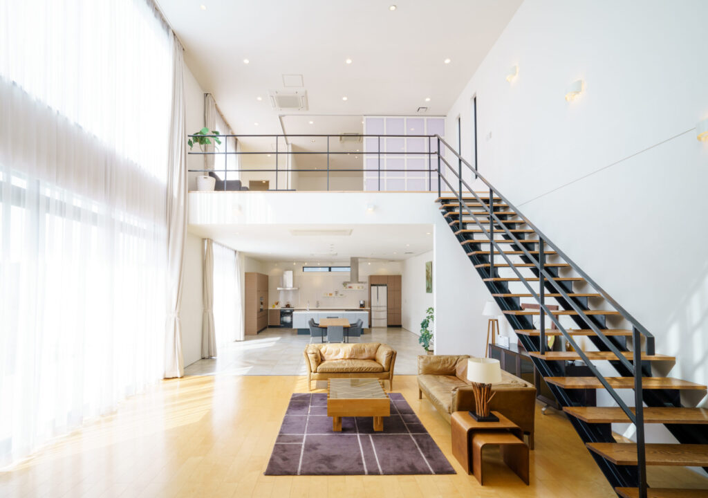 家族が集まるリビングは、吹き抜けや、階段の踏み板とそれを支える骨組みだけでつくられているオープン階段で明るく開放感のある空間にするのがおすすめです。吹き抜けは、暗くなりがちな1階リビングに光を入れる効果も期待できます。