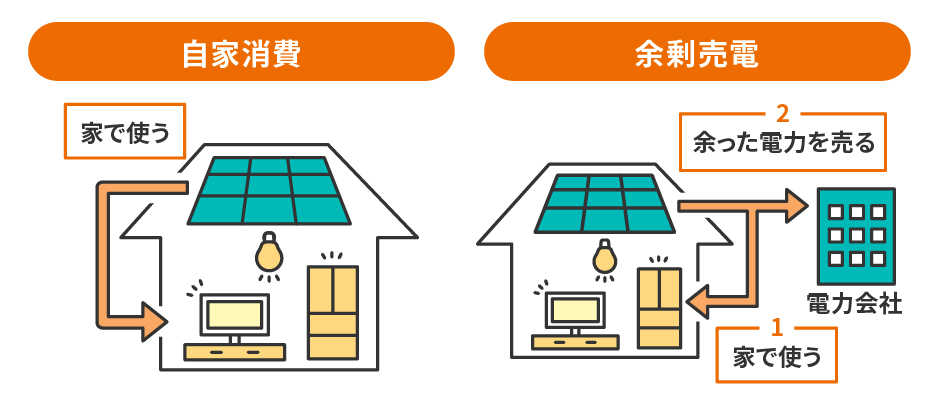 家庭用での太陽光発電において、発電した電気の用途は基本的に「自家消費」か「余剰売電」かの2択になります。