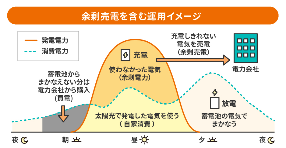 具体的には、家庭で余剰売電を行う場合、次の図のような電気の利用ができるようになります。