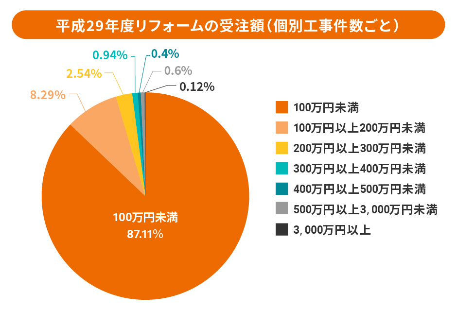 またリフォームの受注額は、100万円未満の工事件数が約半数となりました。