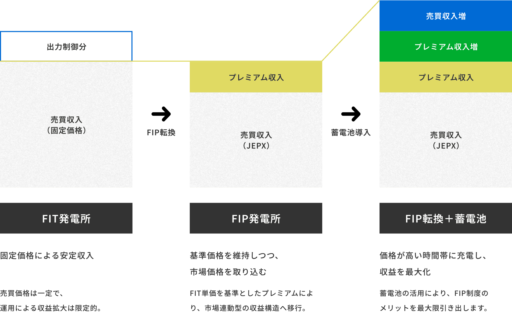 導入事例の概要熊本県菊池市の「リュミエ菊池太陽光発電所」における、九州電力管内初となる既設太陽光のFIP転換と蓄電池後付けの自社事例です。本プロジェクトは自社発電事業のため、売電単価が高い時間帯へのシフト(アービトラージ)による「売電収益の最大化」が主目的となります。出力制御時間帯に蓄電し、市場価格の高い夕方以降に放電することで、収益性の改善を実証します。頻発する出力制御への有効な対策を提示し、再...