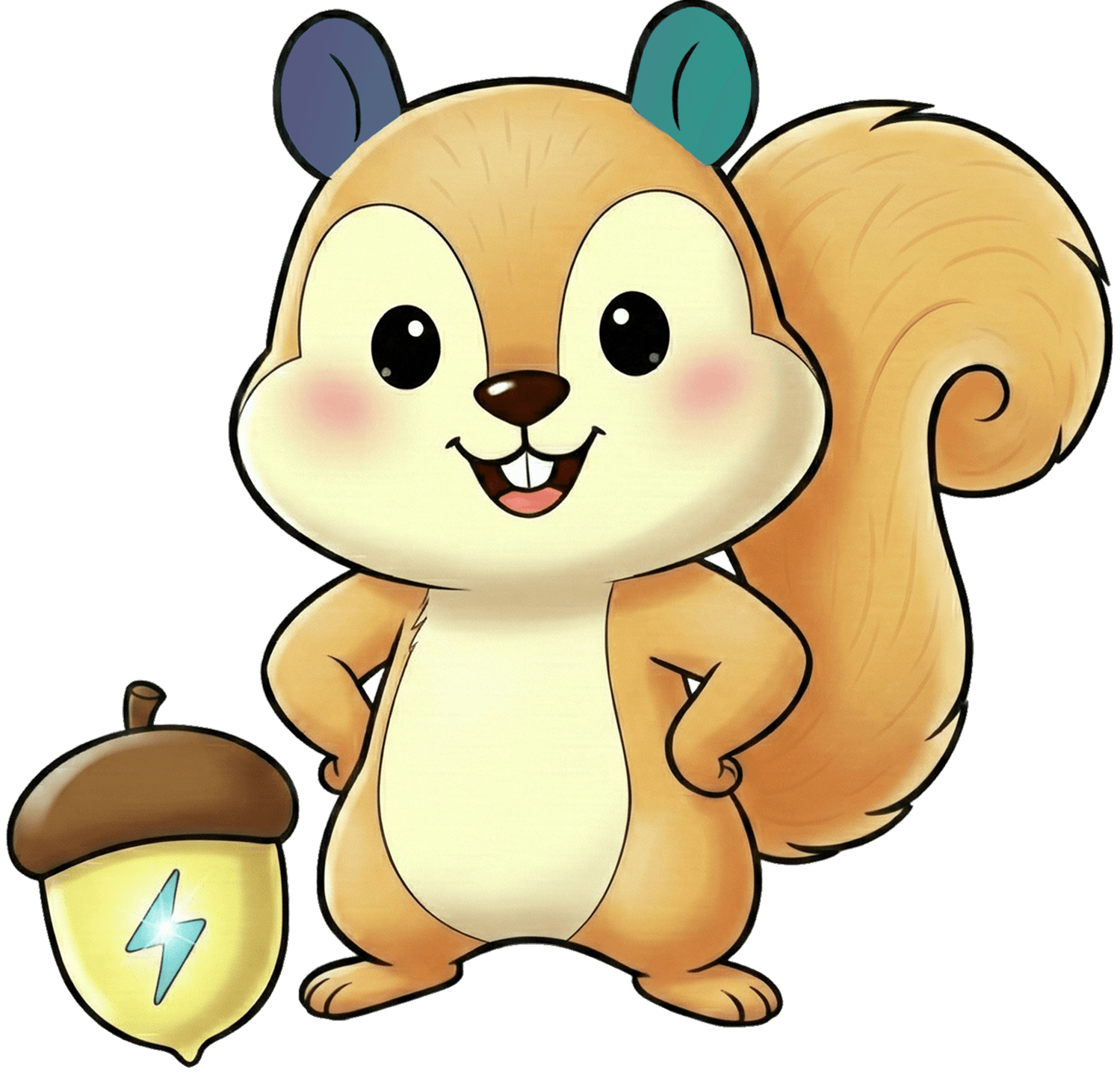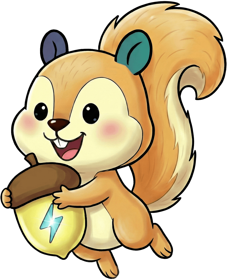 チャームポイントは、蓄電池並みの収納力を誇るふっくらした頬袋。いつも大切に抱えている「エネルギーどんぐり」がイナズマ級にピカピカ光り輝くときは、エネルギーがフル充填された元気いっぱいのサインです。